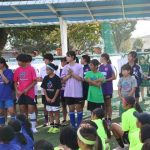 開会式では、山梨県サッカー協会の松坂浩一会長が挨拶。10月3日から6日まで行われた国民スポーツ大会でサッカー少年女子の部で山梨県代表が5位入賞を果たしたことを受け、「近年にない成績で非常に喜んでおります」と語り、「協会としても女子の普及はとても大事だと認識しております。今はWEリーグというプロのカテゴリーもできましたので、みなさんには、今後も頑張っていただきたいです」とエールを送った。また特別協賛の山梨ダイハツの青木保常務取締役は、「今年4月からは日本航空高等学校附属中学校でも女子サッカー部がスタートしたことは大変うれしく思っています。今日は日中30度近い気温になる予報も出ていますので、熱中症対策もしていただき、元気なプレーで一日楽しんでください」と励ましの言葉をかけた。さらに、大会をサポートする中学生の選手たちが小学生たちに楽しんでプレーしてもらうため、一発ギャグを披露するなどして、開会式を盛り上げてくれた。